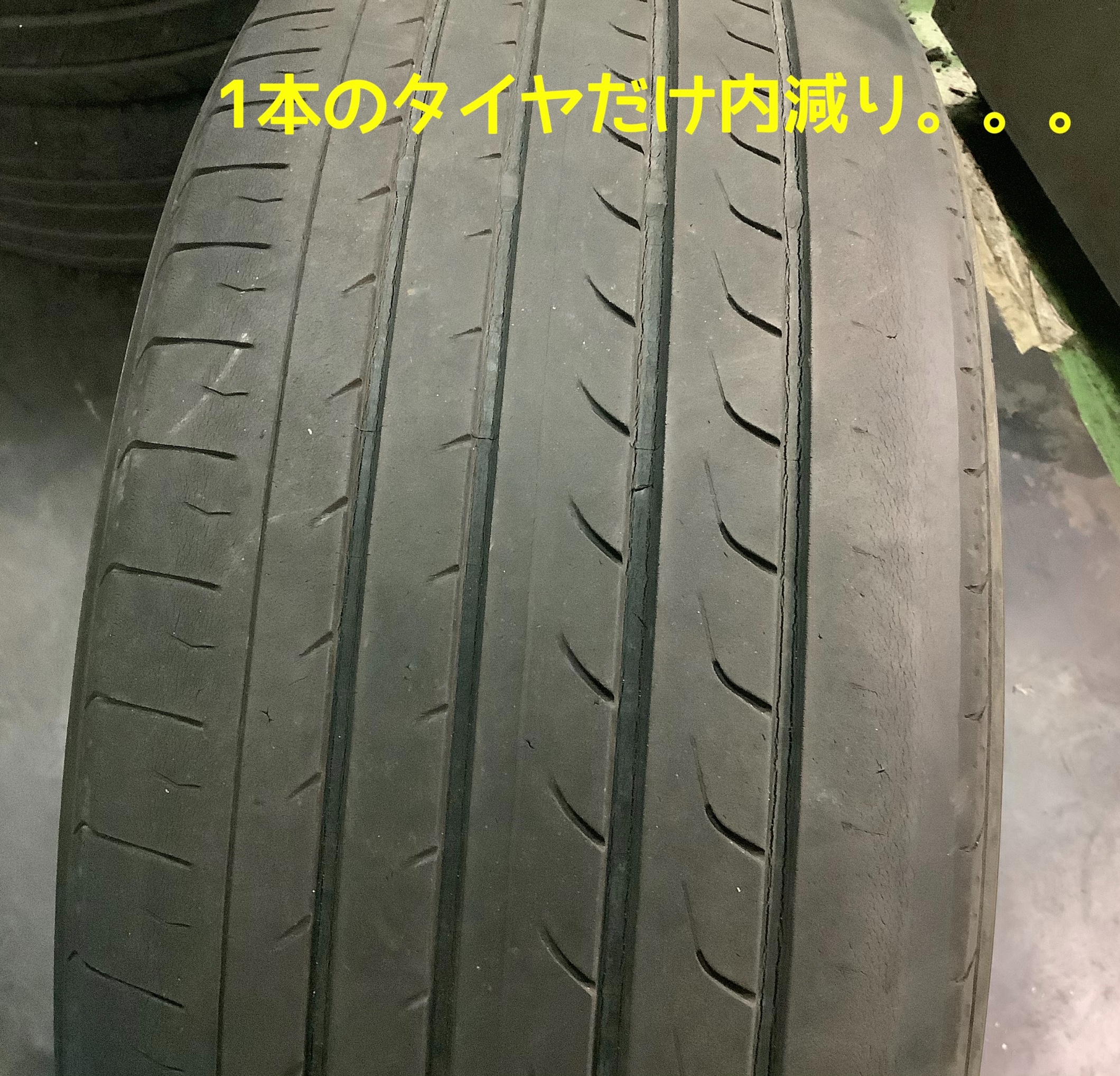 パンクなどにより、交換時期が異なるタイヤもありましたが、極端に1本だけ内側が減ってしまっておりました。。。