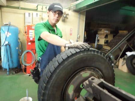 そのような場合は、こんな機械を使ってタイヤを外していきます。