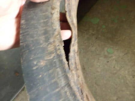 このよう場合は残念ですが、チューブ&フラップの交換が必要です。