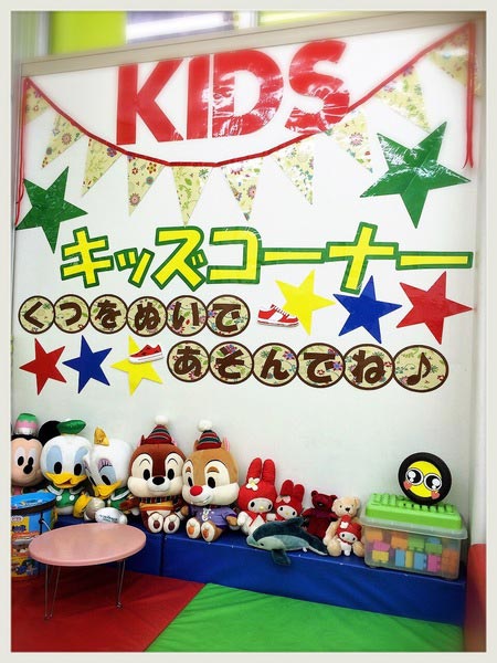 「キッズコーナー」の飾りを新しくしてたよ~(人´3`*)フンフフ~ン♪