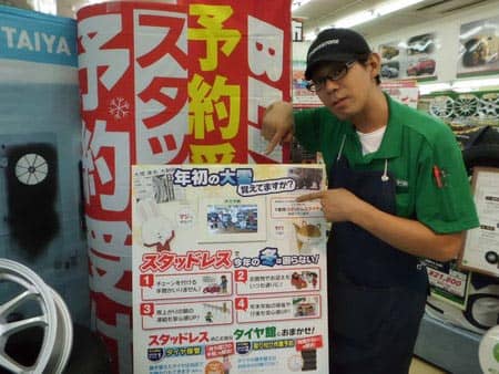 本日、本部からスタッドレスタイヤ展示の飾りが届きました!