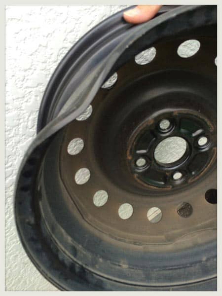 純正スチールホイールが、ぐんにゃり。゚+(。ノдヽ。)゚+。