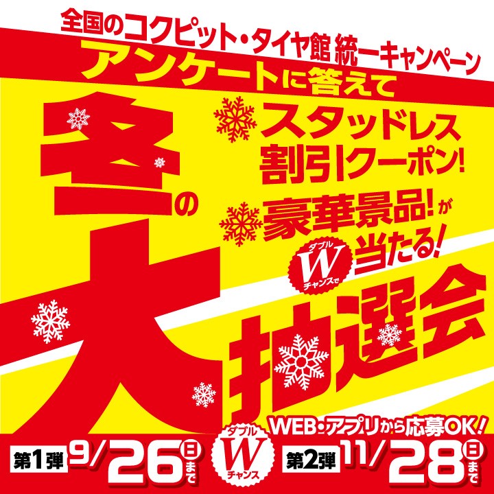 第2弾受付中!!【アンケートに答えて豪華景品が当たる!全国コクピット・タイヤ館~冬の大抽選会~】