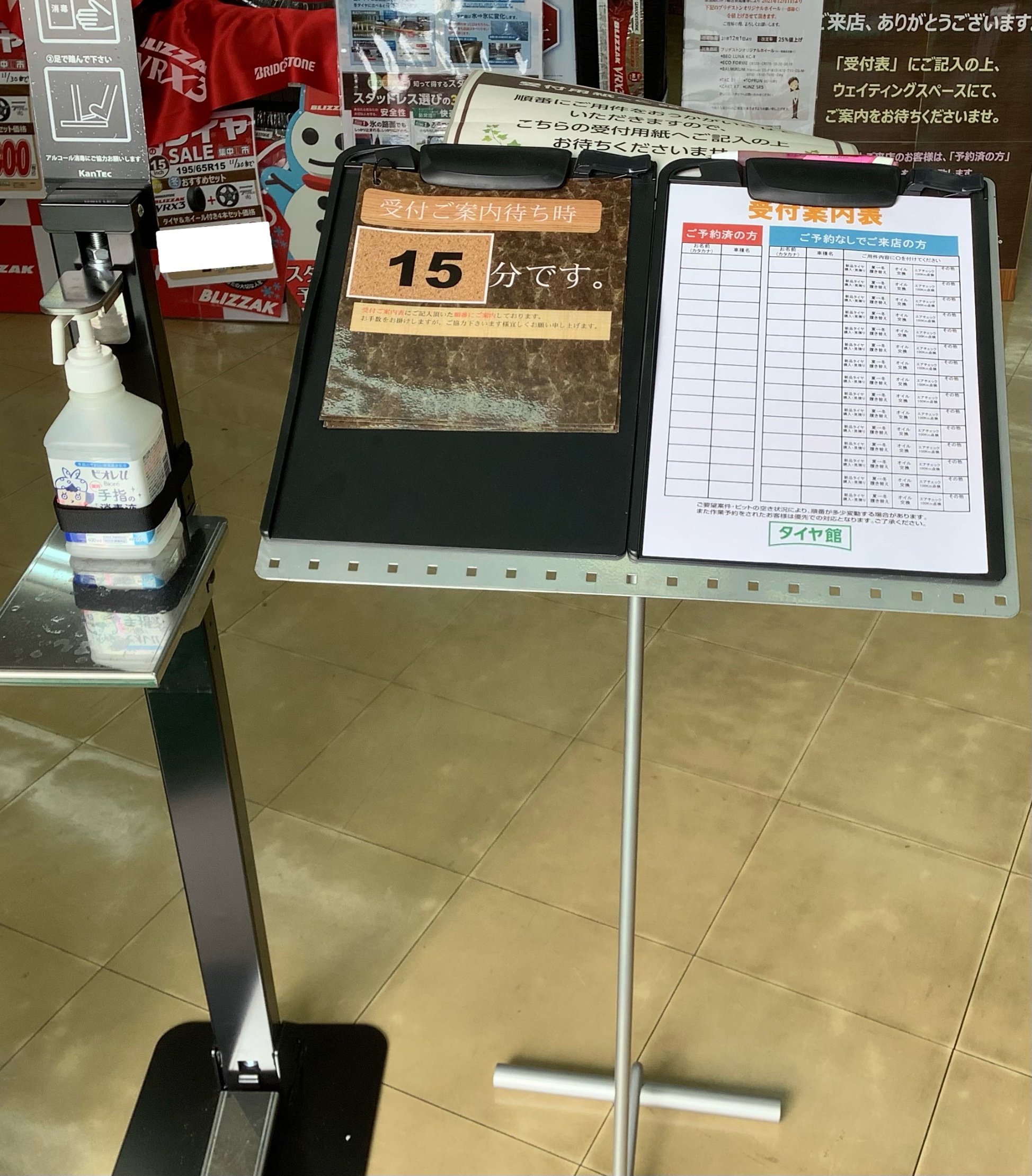 店内入口の正面に設置している「受付表」にお名前等をご記入いただき、ウェイティングスペースにて、ご案内をお待ちくださいませ。
