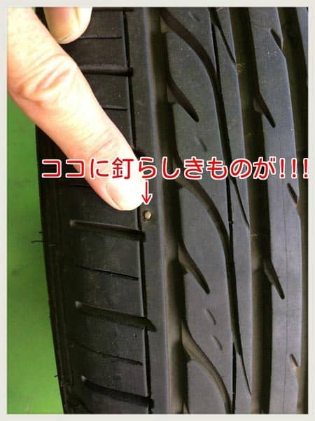 写真のタイヤはまだ新しいのですが、小さな小さな釘?のようなものが・・・o(T◇T o)