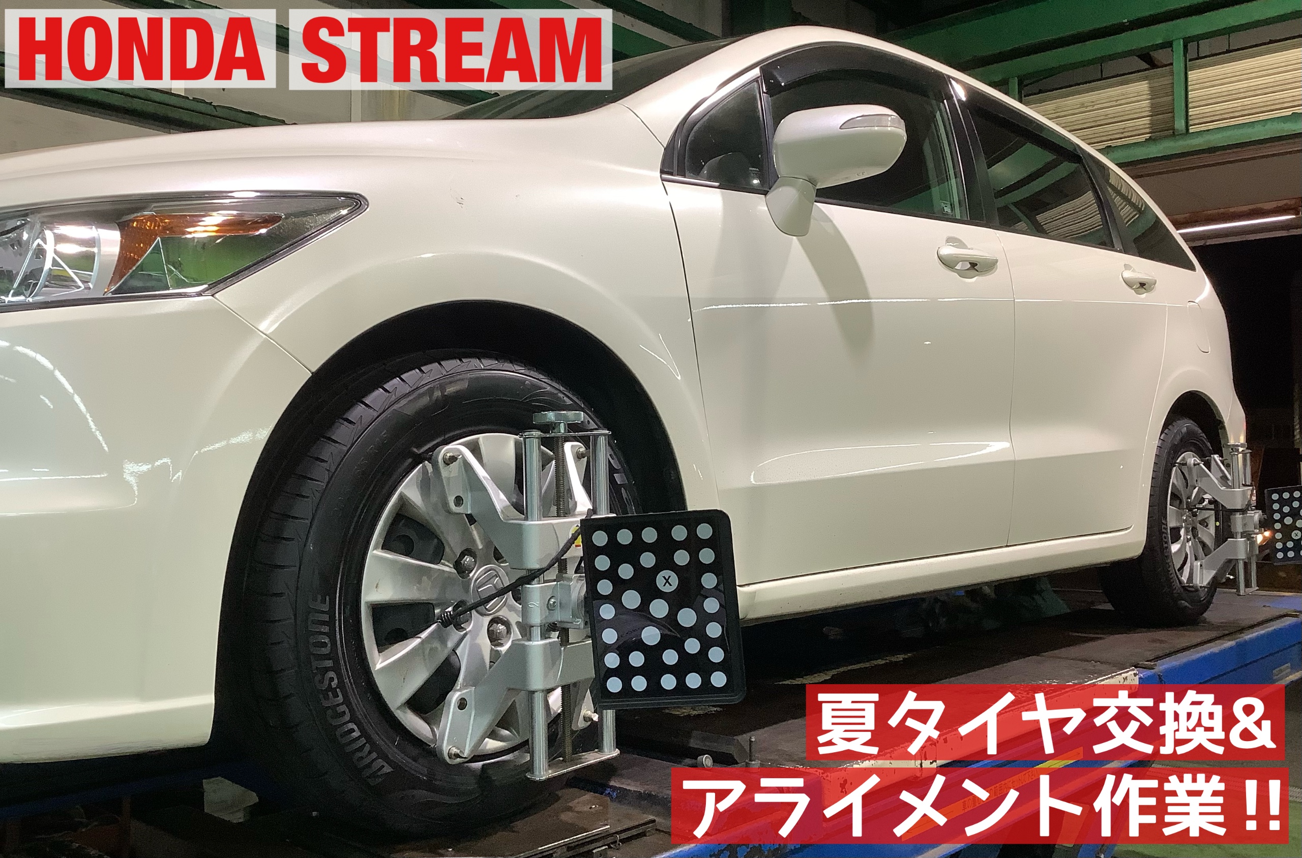 【ホンダ/ストリーム】夏タイヤ交換&アライメント作業!!d(・∀・○)