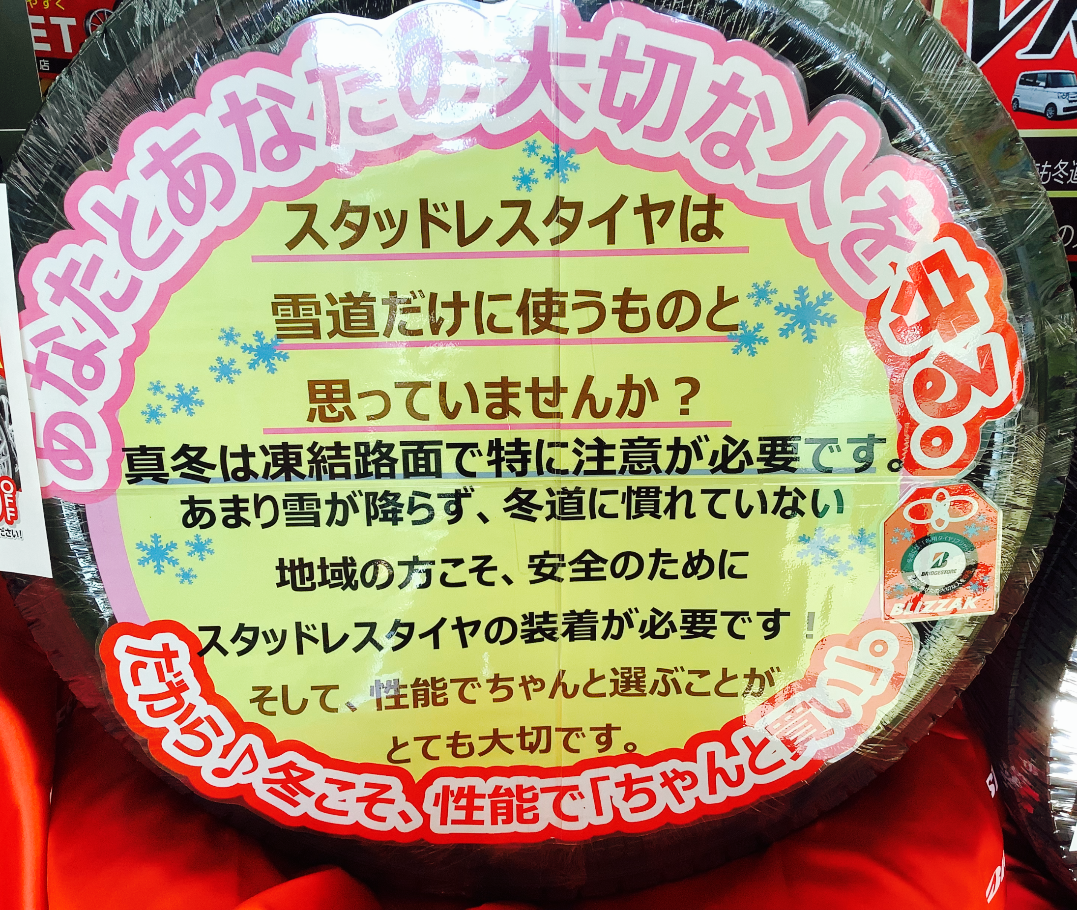 スタッドレスタイヤをお持ちでない方は、安全安心運転のため、スタッドレスタイヤのご購入をおすすめいたします。