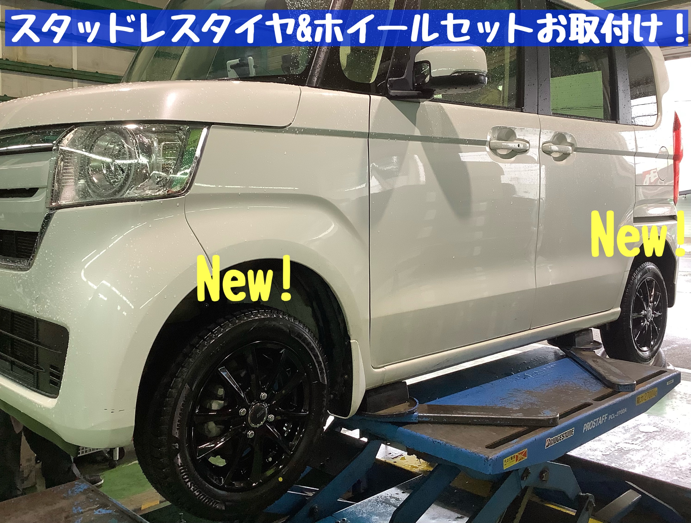 本日は、【ホンダ/N-BOX】のスタッドレスタイヤ&ホイールお取付け作業です(*・∀・)ノ