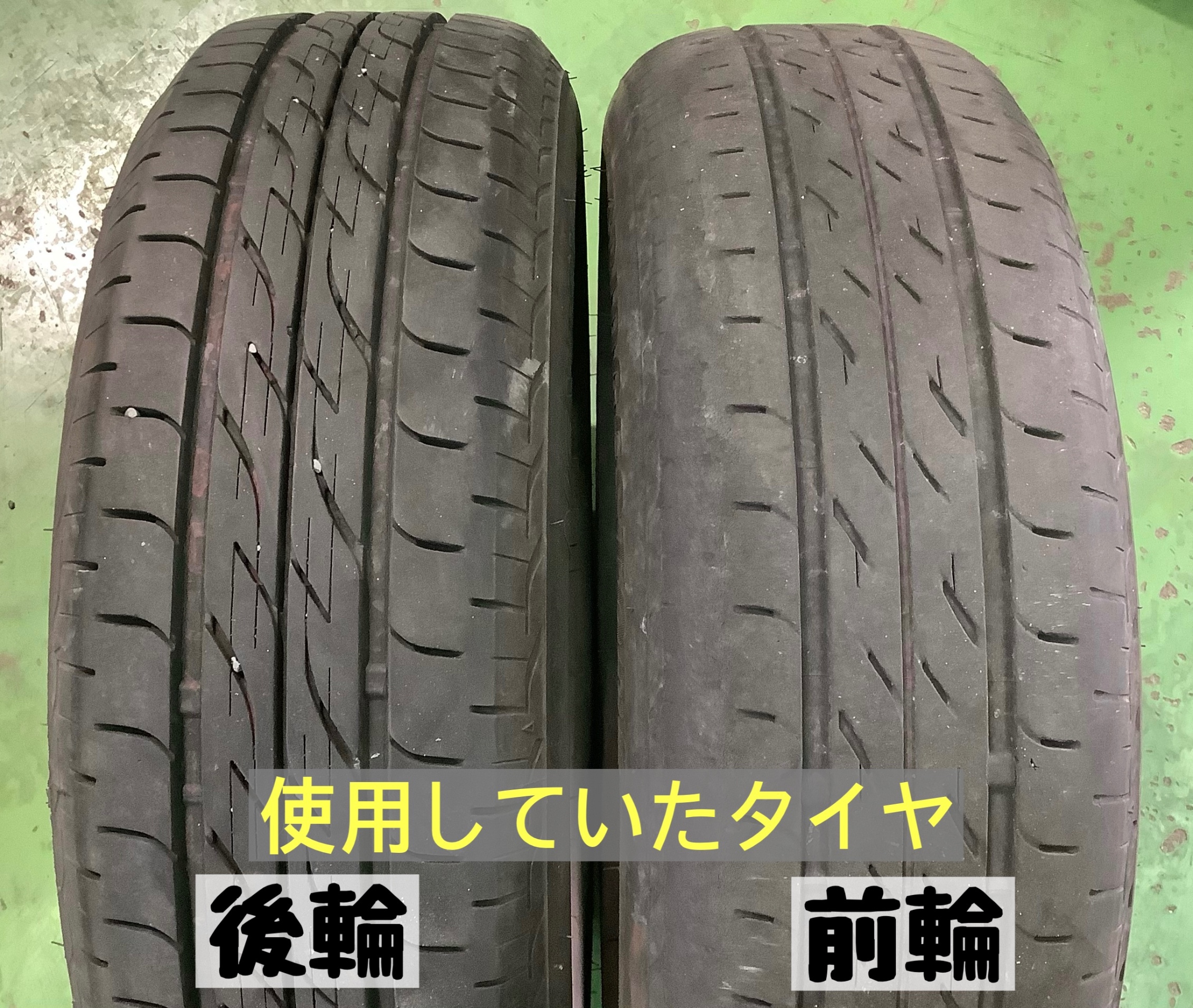 ご使用中のタイヤは、2本ずつ新品交換し、その後ローテーション(位置交換)などはせずに乗っていた期間が長かったようで、前輪・後輪で減り方に大きな差が出ておりました(*゚Д゚*)!