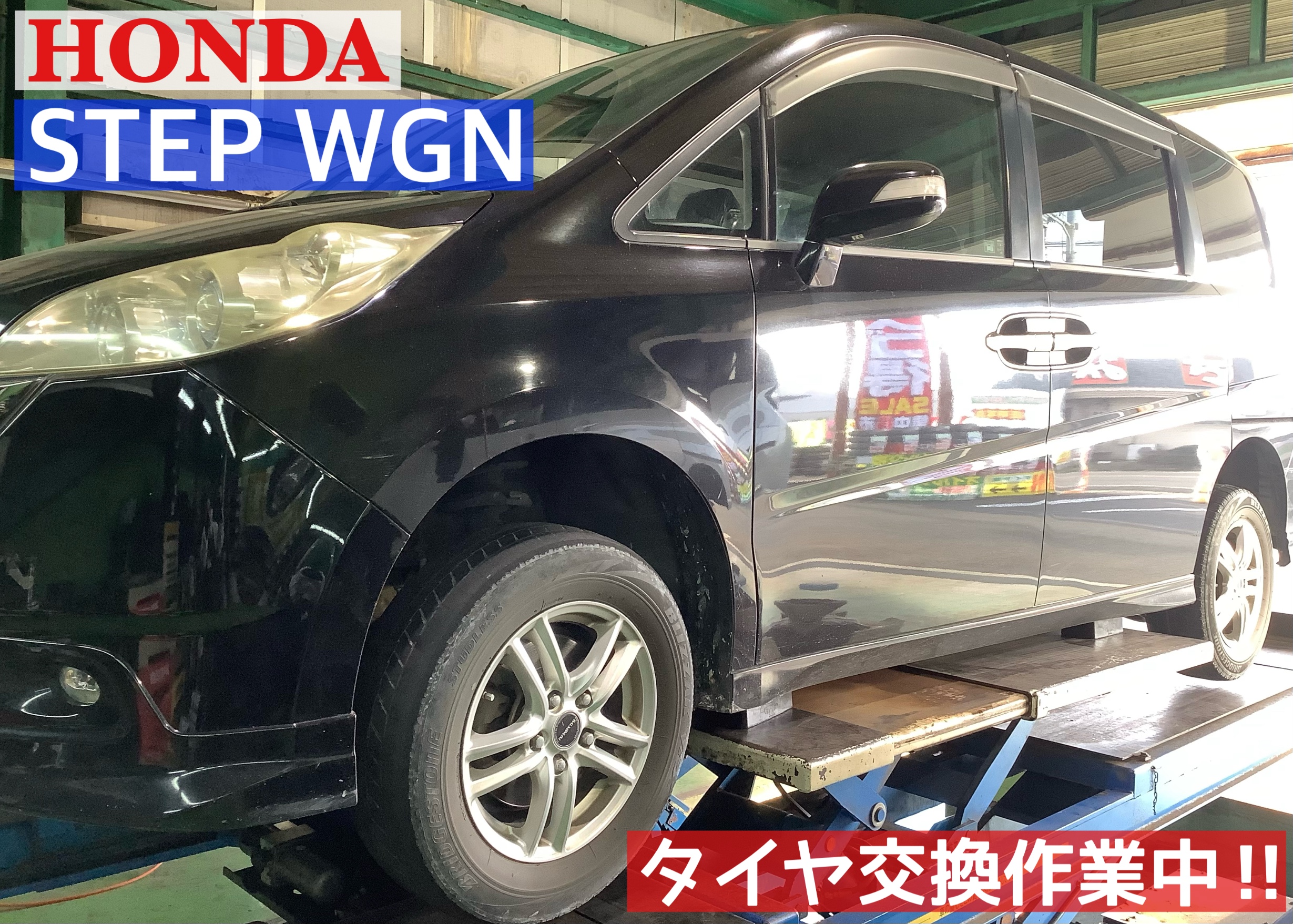 【ホンダ/ステップワゴン】タイヤ&ホイール交換+アライメント作業!!d(・∀・○)