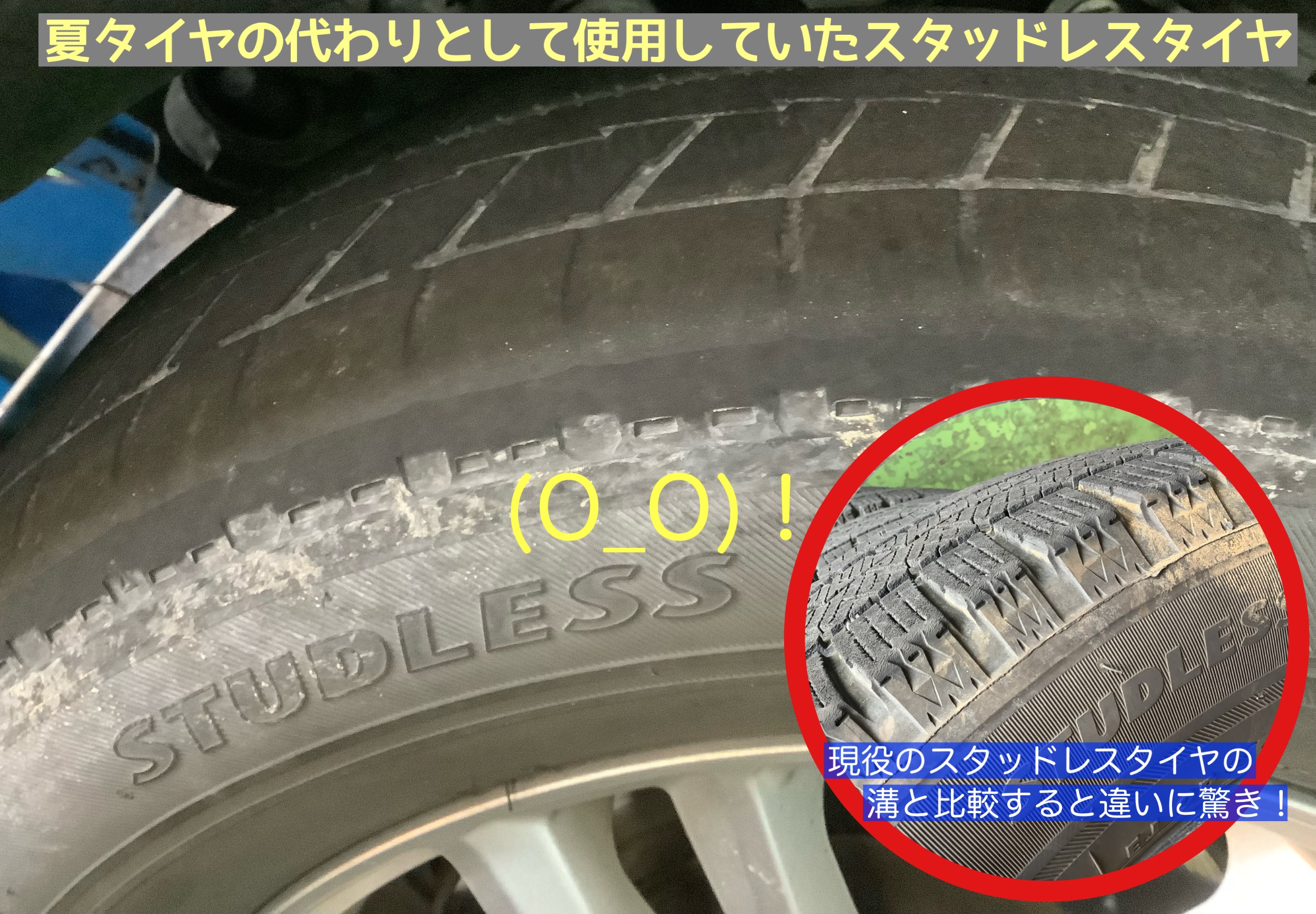 スタッドレスタイヤとしての役割を終え、夏用タイヤの代わりに使用していたタイヤは、しっかりご使用いただき、驚くほど溝がなくなっていたため(o゚Д゚ノ)ノ、新品交換にお越しくださいました!
