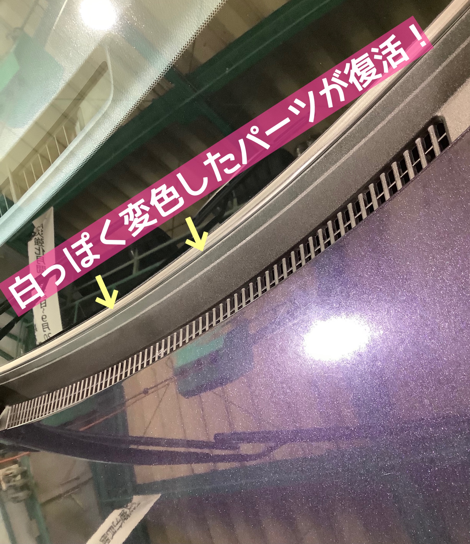 この樹脂系のプラスチック部品は、年数が経って劣化すると段々と白っぽく変色していきます。
