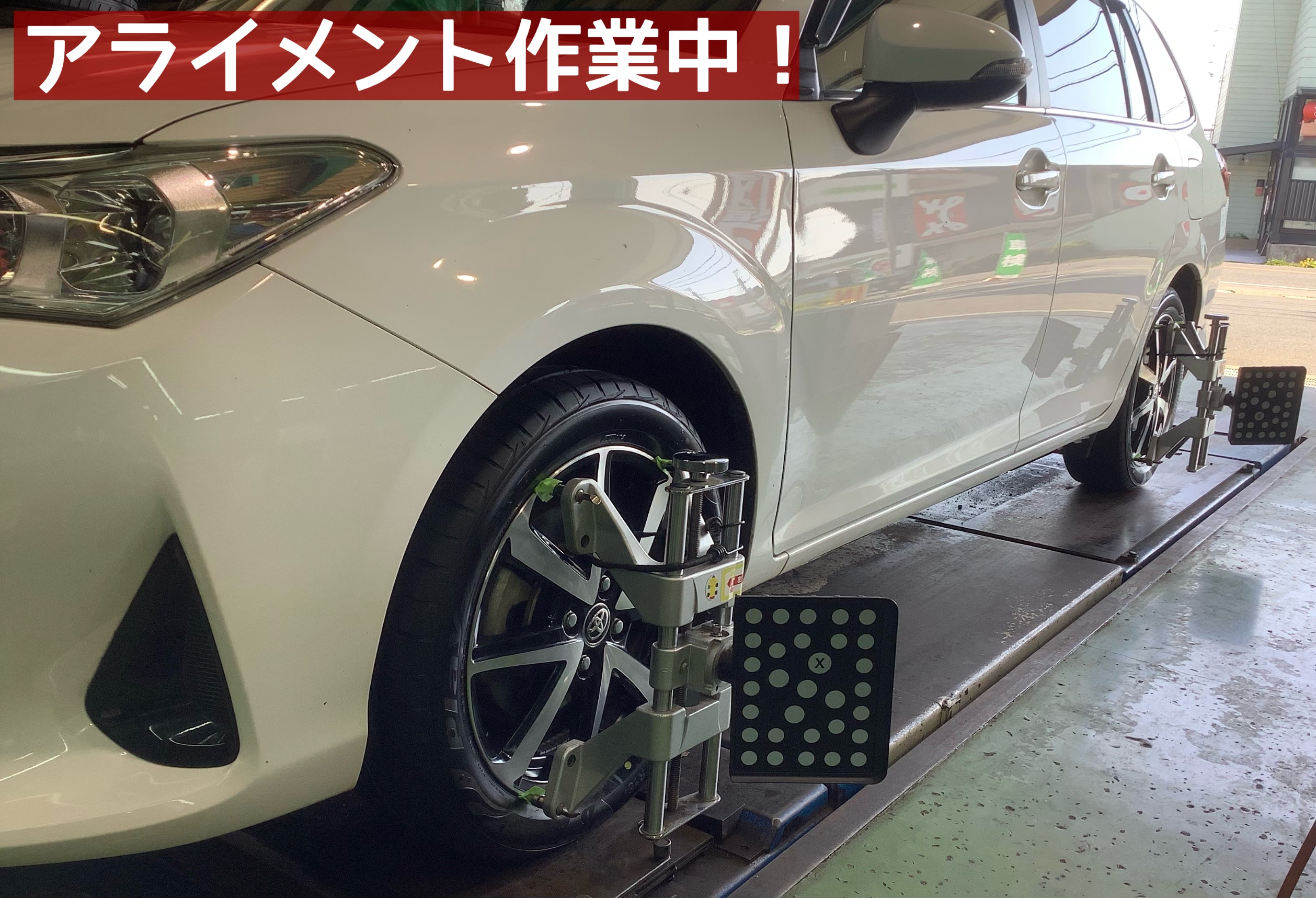 本日は、【トヨタ/カローラフィールダー】のタイヤ交換&アライメント作業です!!d(・∀・○)