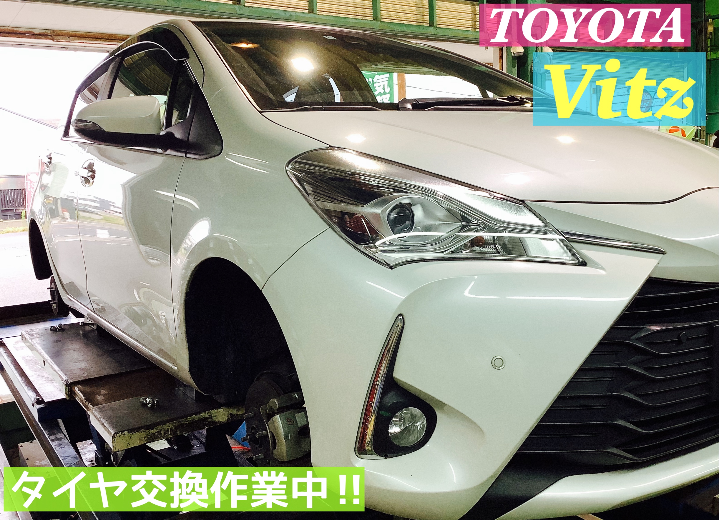 本日は、【トヨタ/ヴィッツ】の夏タイヤ交換&アライメント作業です(*・∀・)ノ