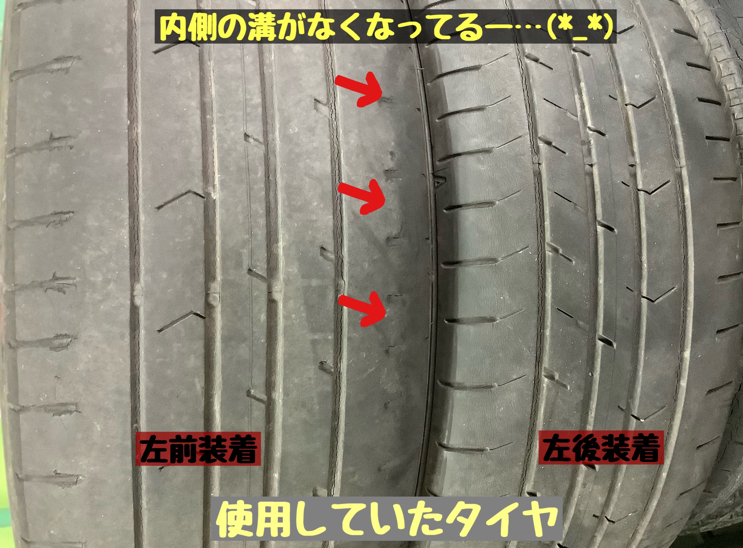 タイヤ内側の溝がすっかりなくなって交換が必要な状態です・・・(・∀・i)タラー・・・