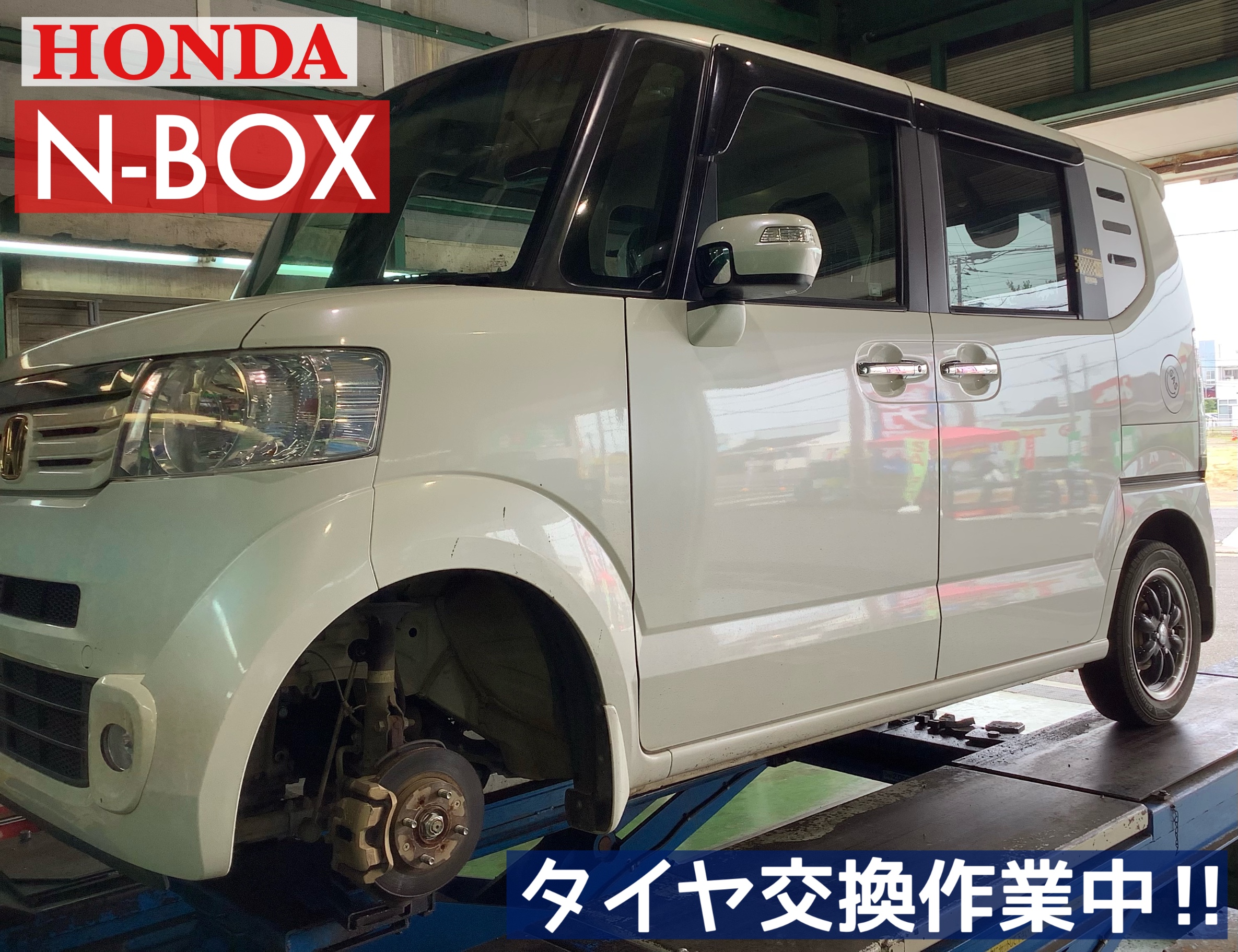 本日は、【ホンダ/N-BOX】の夏タイヤ交換&アライメント作業です(*・∀・)ノ
