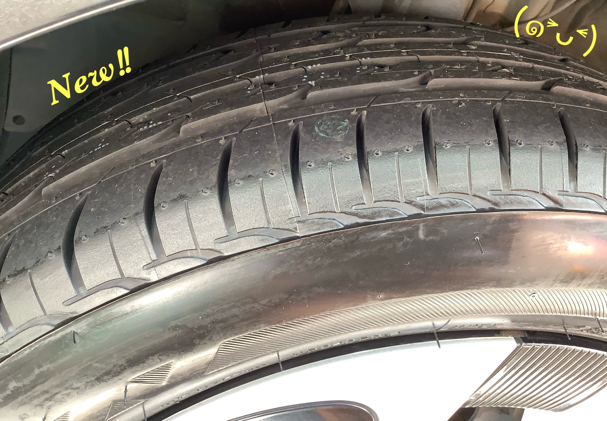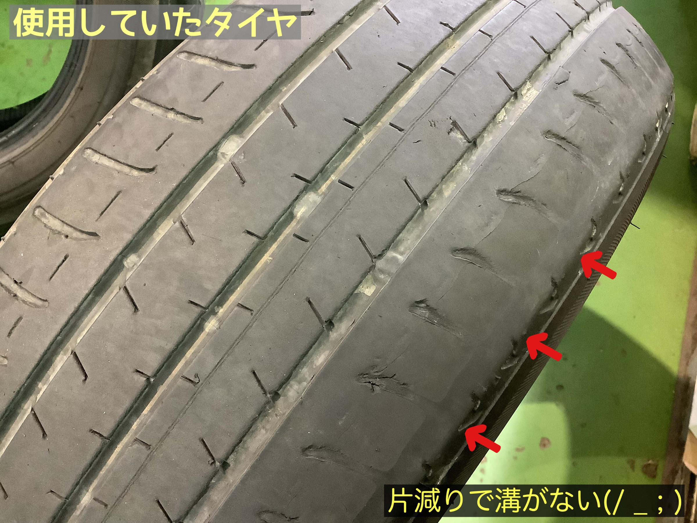 おクルマの使用期間は3年弱ですが、片減りの症状もあり、外側の溝がなくなって交換時期に…(・∀・;)