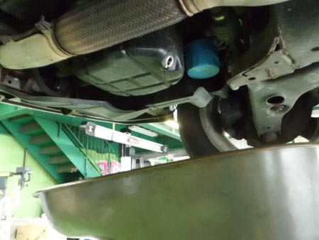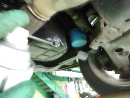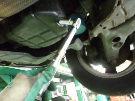 エンジンオイルドレンボルトをはずしてオイルを抜きます。