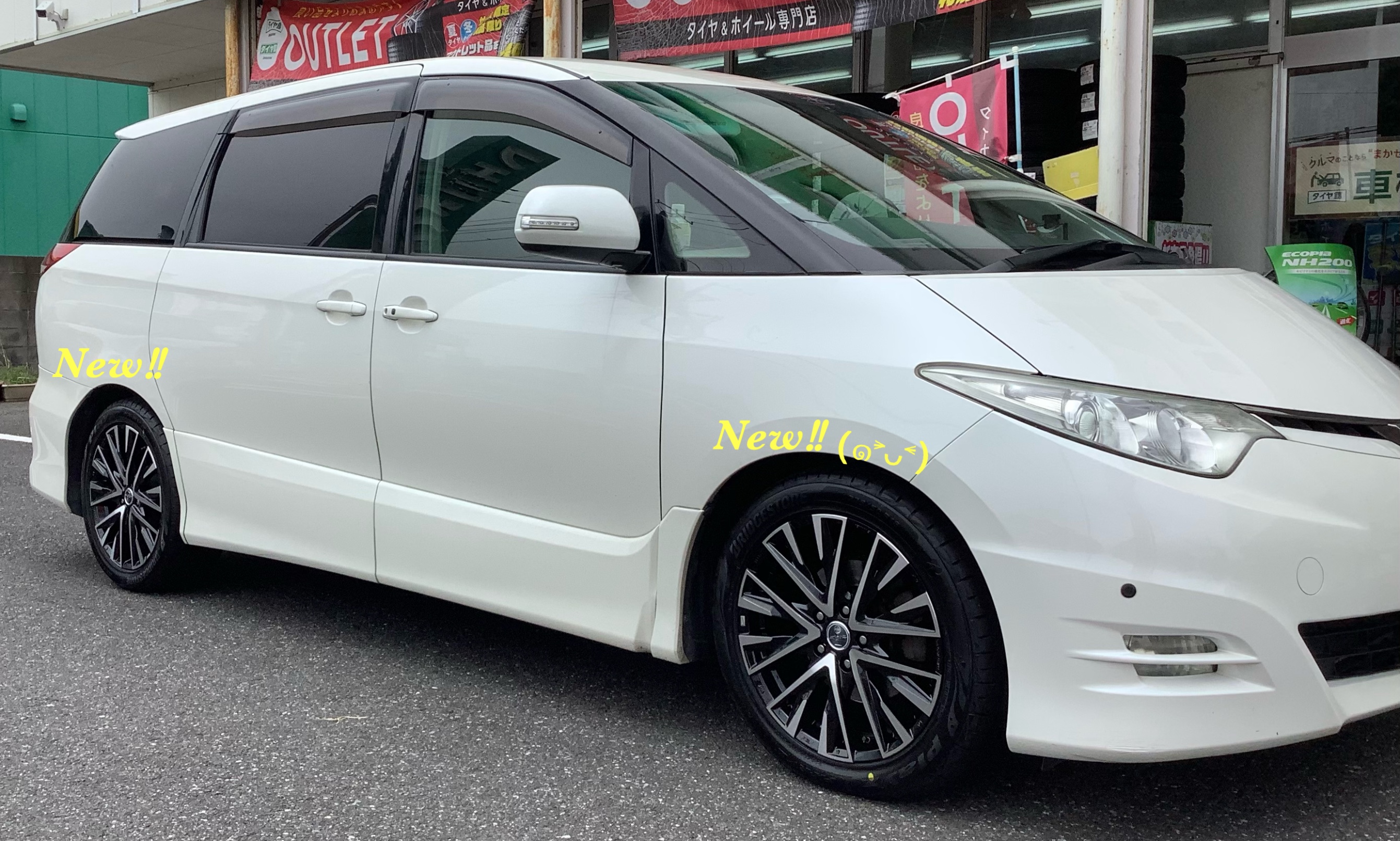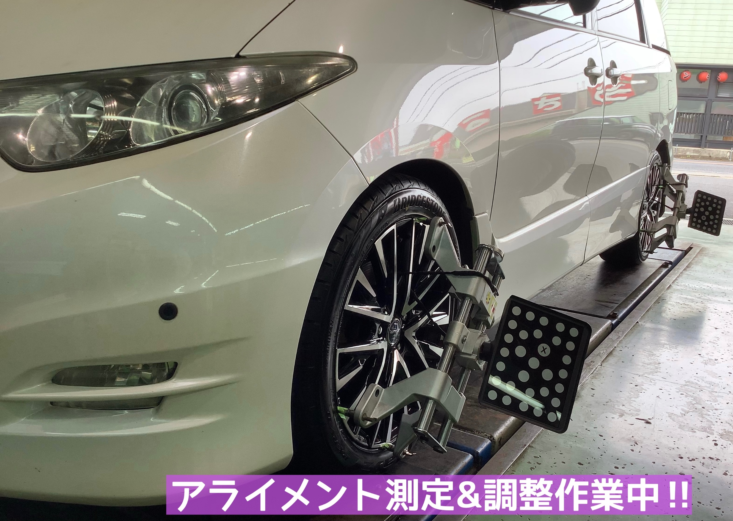 【トヨタ/エスティマ】タイヤ&ホイール交換+TPMS取付け+アライメント作業!!d(・∀・○)