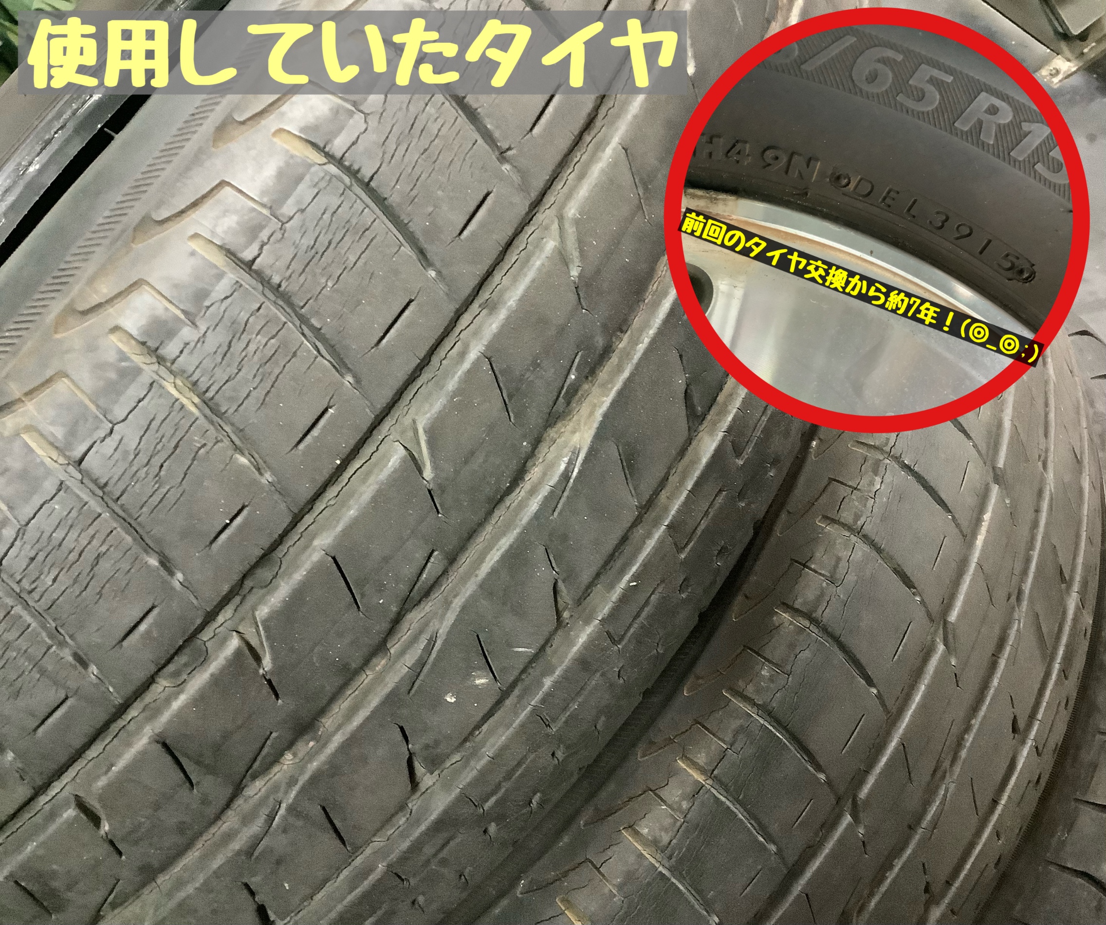 「だいぶ年数も経ったしもう交換だ!」ということで、タイヤを点検してみると(*゚Д゚)/ワーー!!
