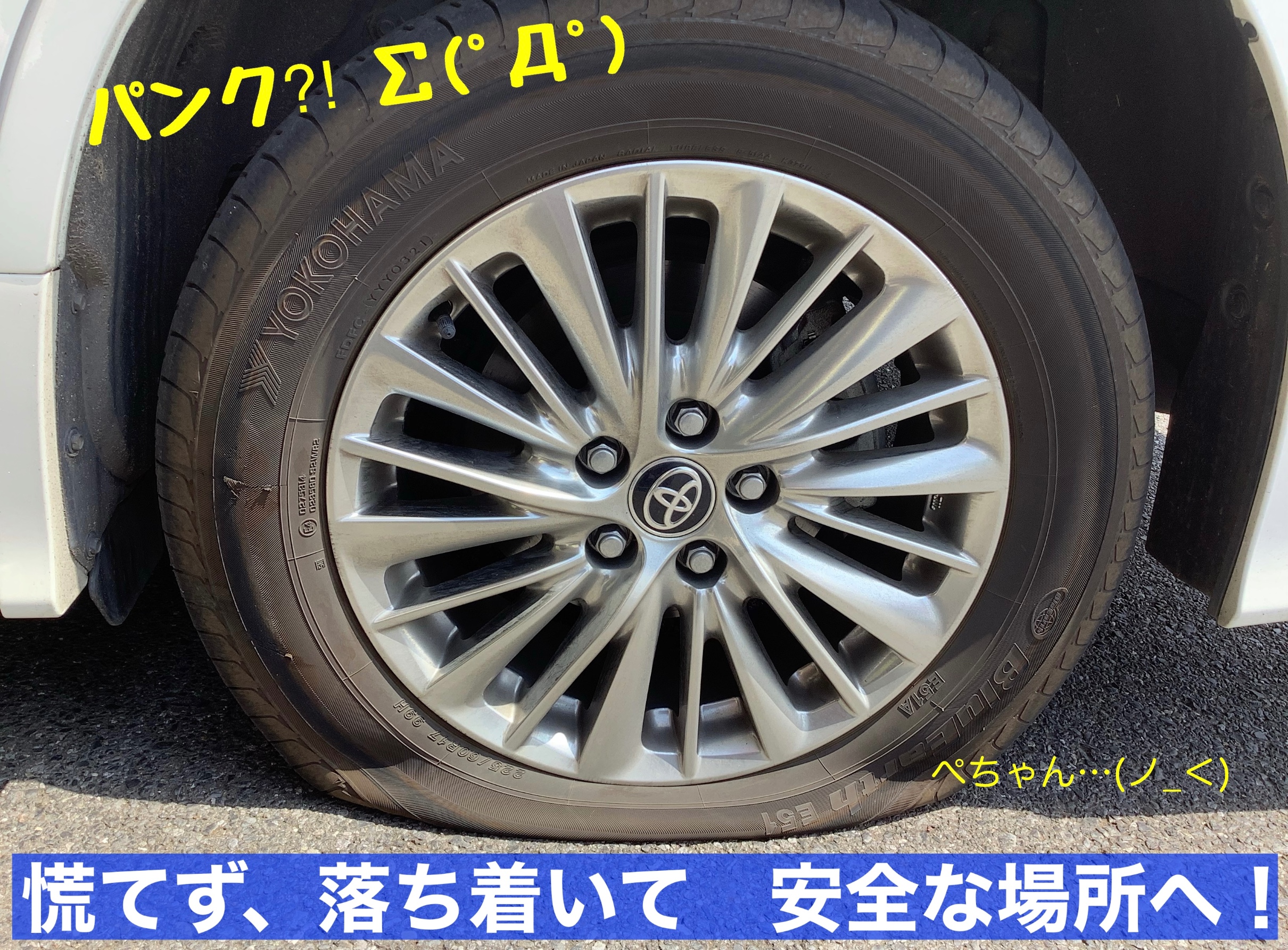 スペアタイヤ搭載車の方は、スペアタイヤに交換、もしくはロードサービスへご連絡を!