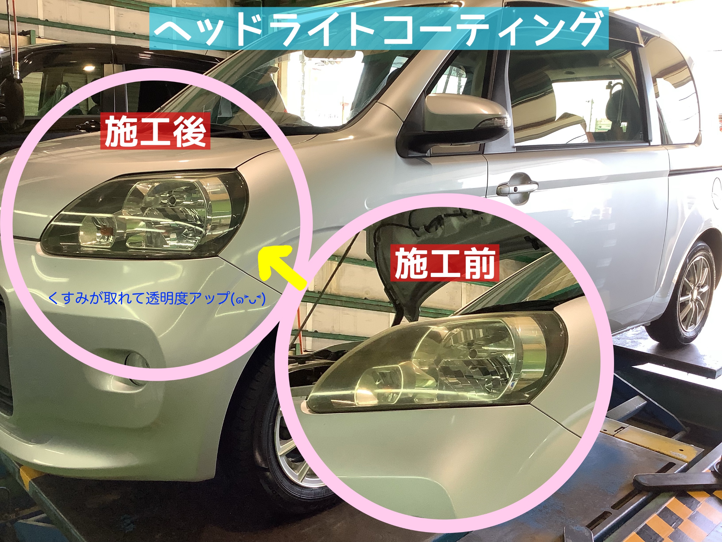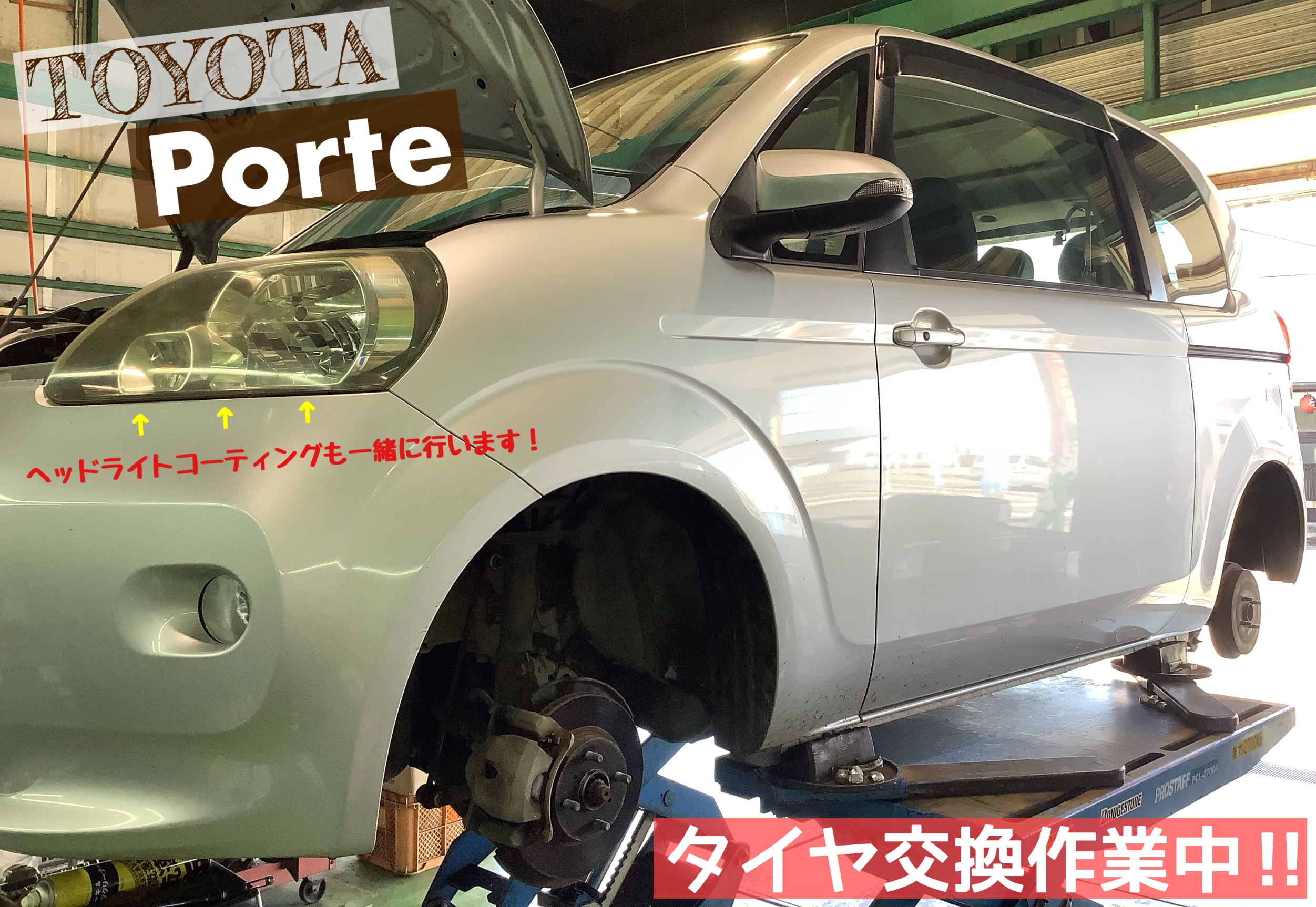 【トヨタ/ポルテ】タイヤ交換&ヘッドライトコーティング作業!!d(・∀・○)