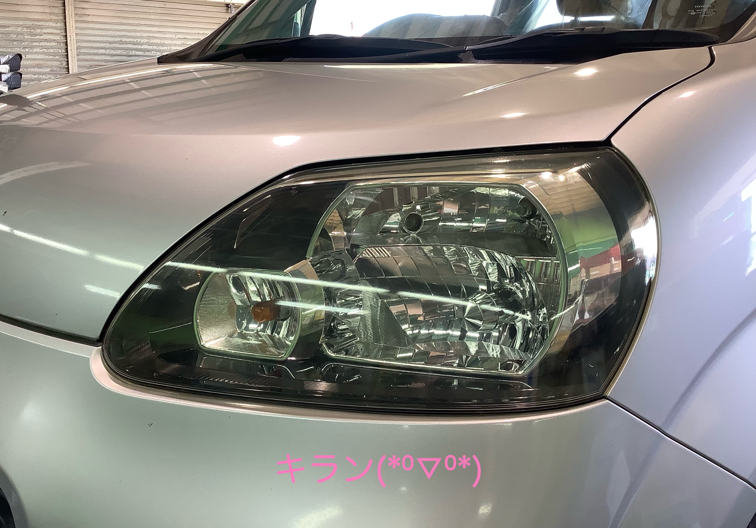 そして!タイヤ交換と同時に、当店のタイヤ交換のパックメニューから「ヘッドライトコーティング」作業を一緒に施行させていただきました~(*・∀・)ノ