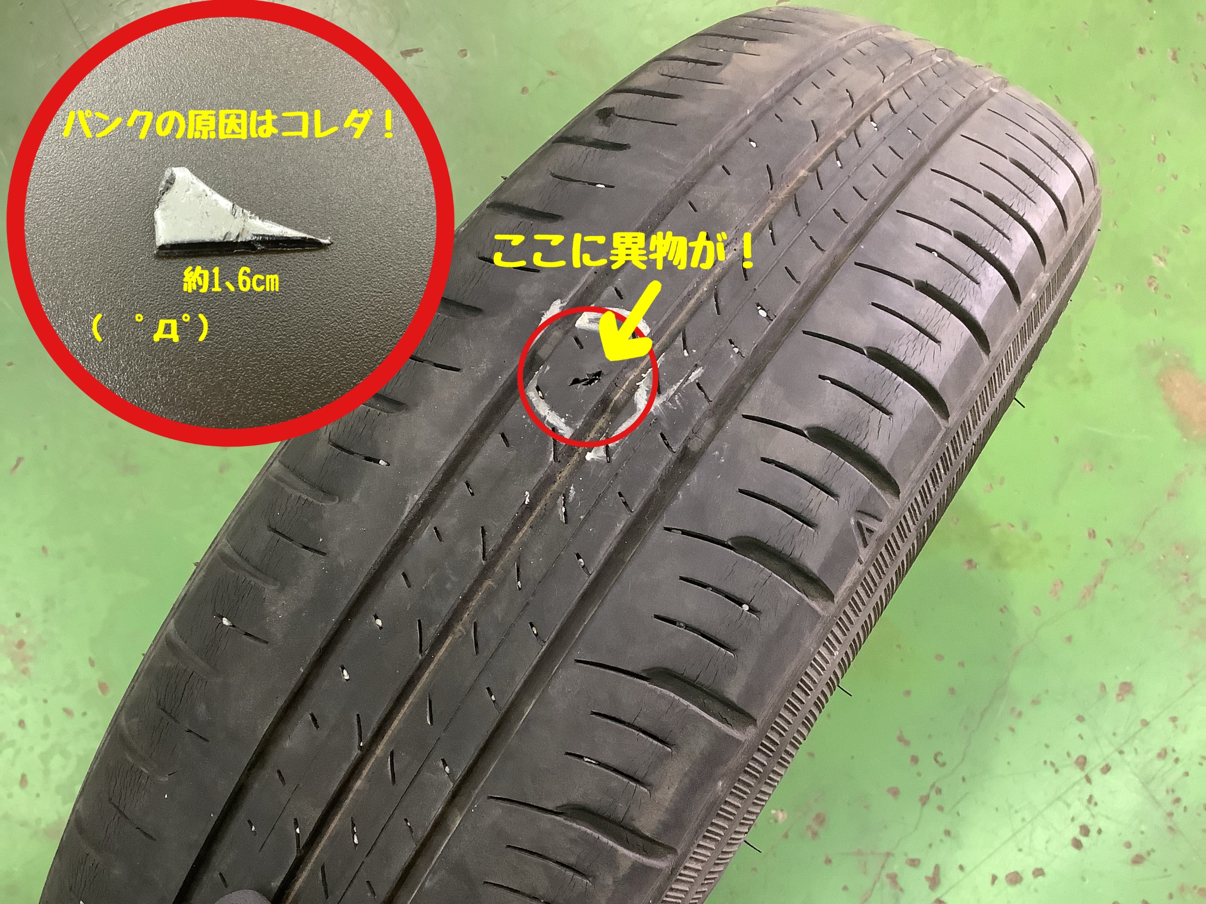 「何かが刺さってパンクしてしまった!」ということで、お越しくださいました。