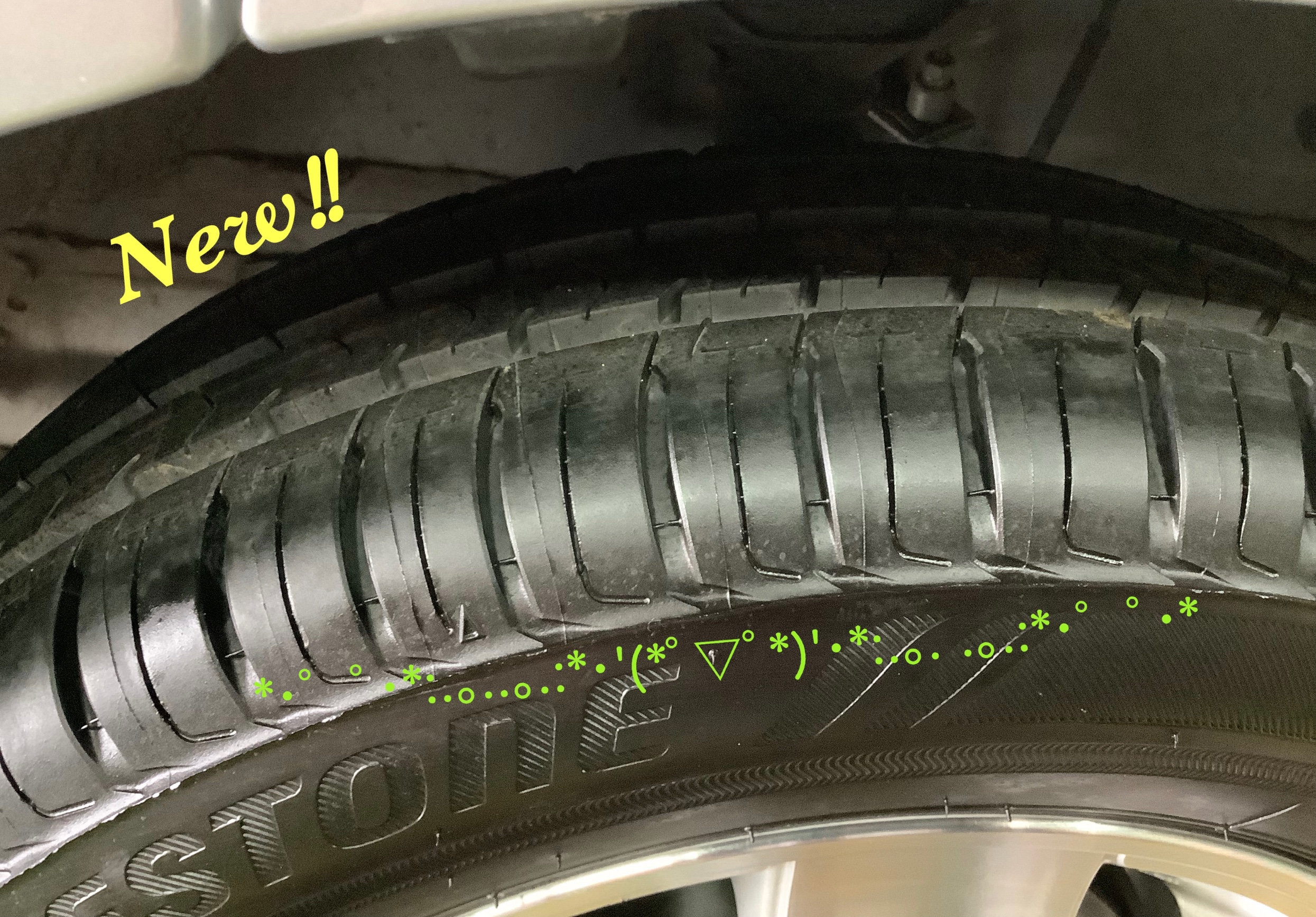 タイヤの片減りを抑制し、新しいタイヤをより長くご利用いただくため、タイヤの向き・角度を測定するセンサーを装着し、ズレを調整させていただき、終了でございますd(`・∀・)b