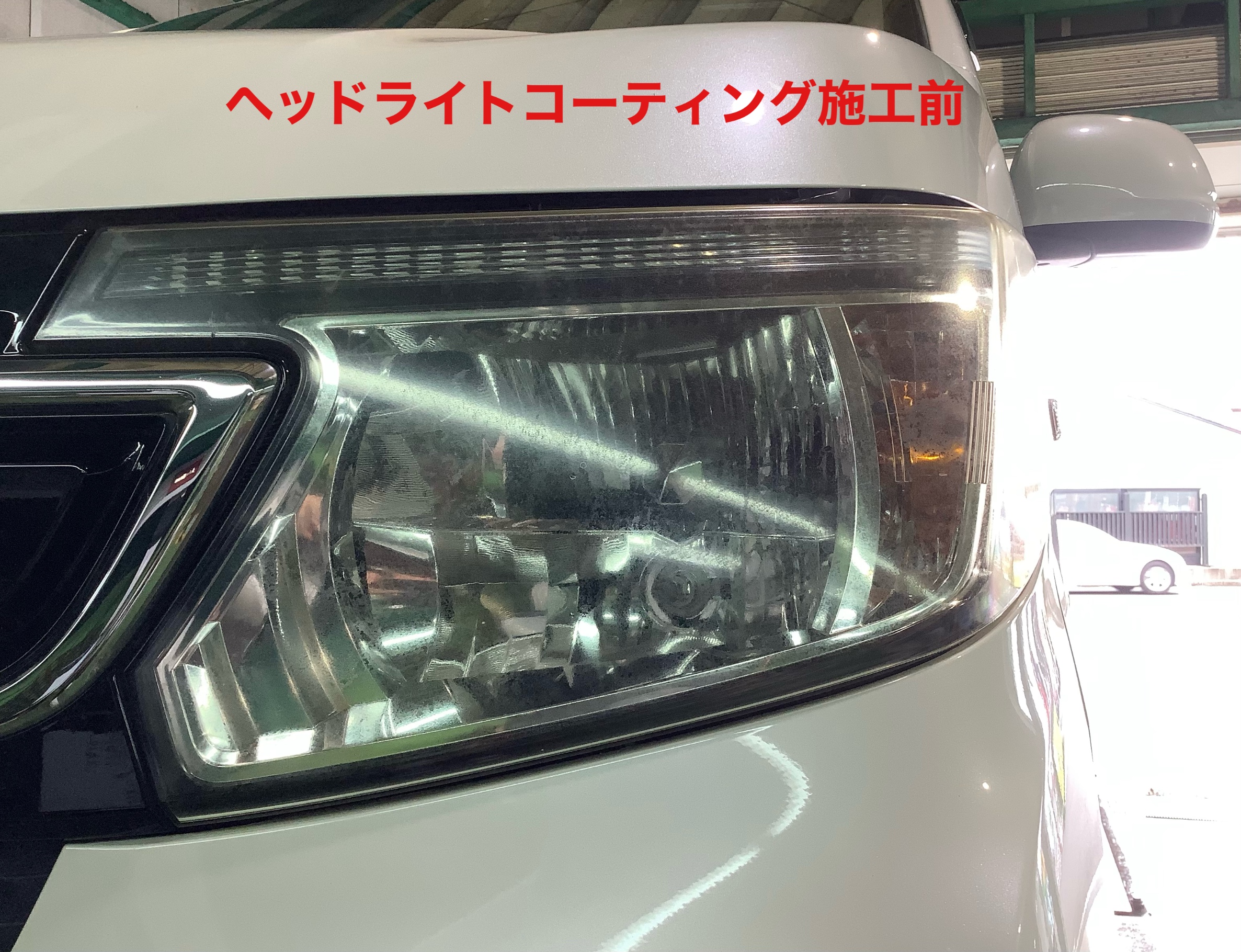 当店では、専用のベース処理剤で黄ばみやくすみを除去し、最後にコート剤で硬質被膜を形成しヘッドライトを保護する施工を行っております!