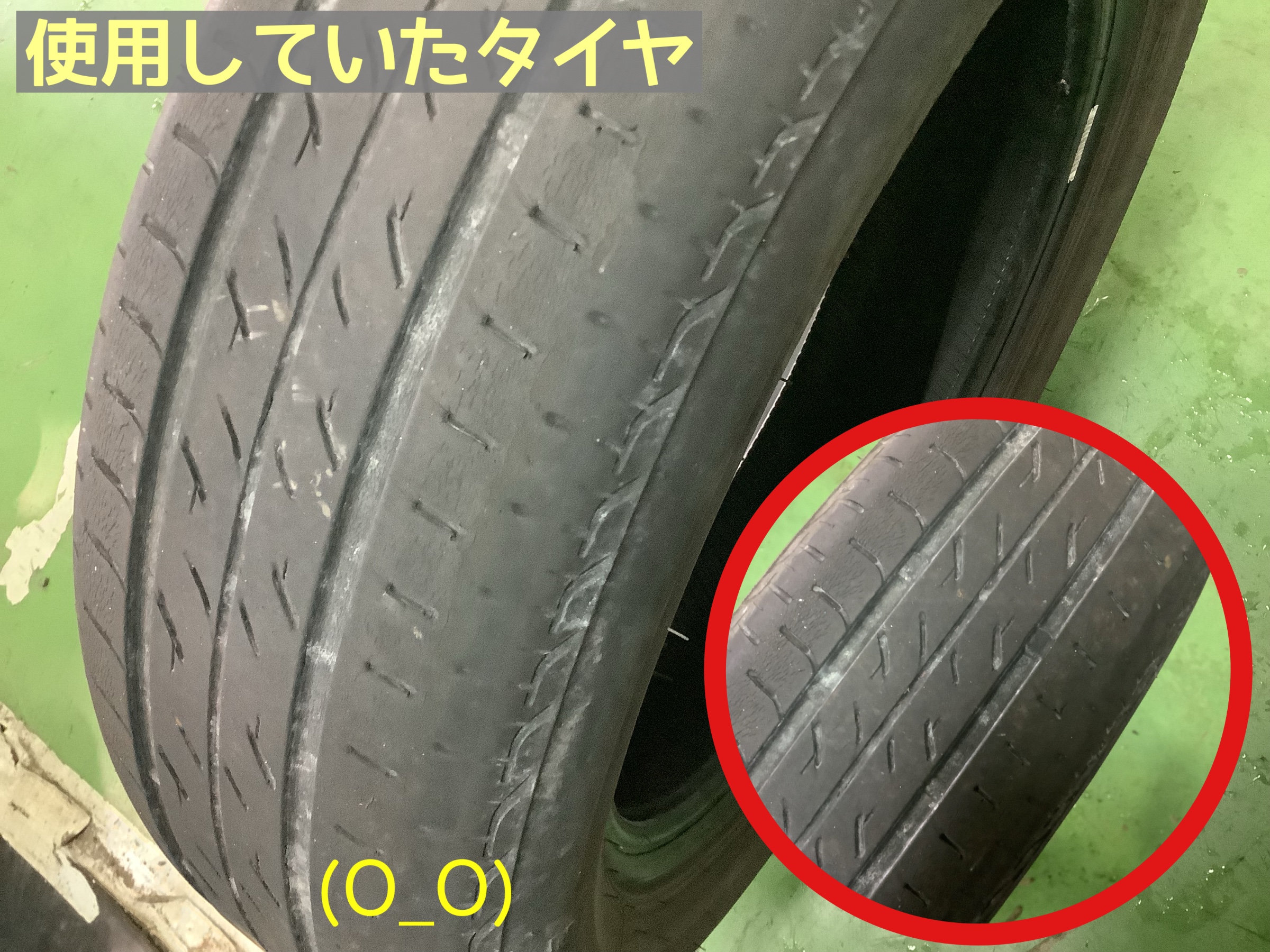 3年程ご使用だったタイヤは、左側2本の一部の溝が早く減っている状態に( ;∀;)