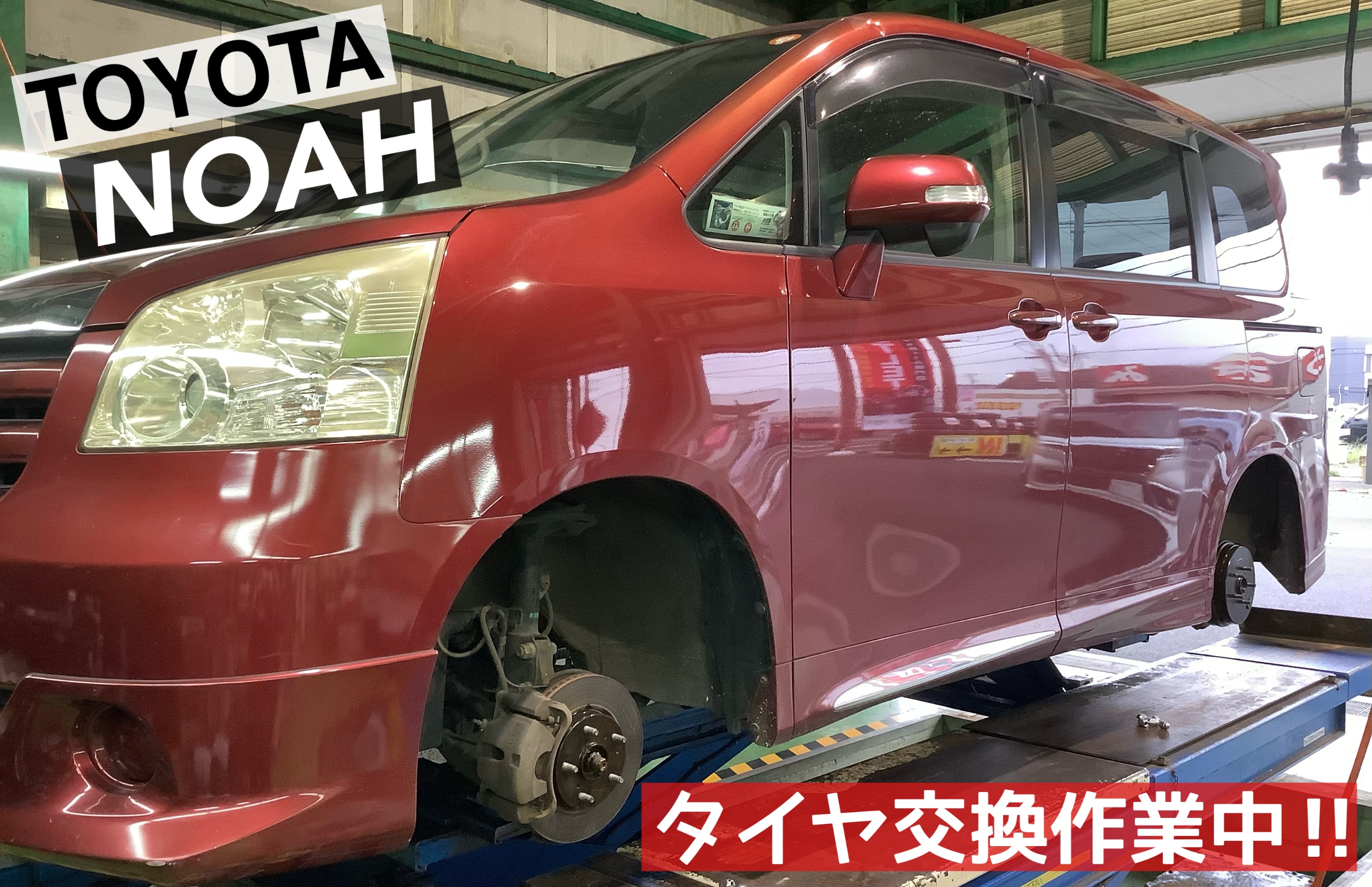 本日は、【トヨタ/ノア】のタイヤ交換&アライメント作業です(*・∀・)ノ