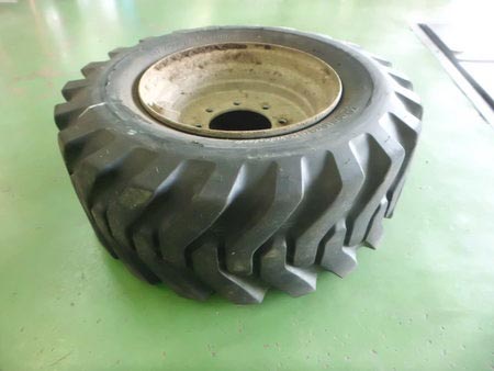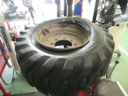 ショベルローダーのタイヤパンク修理作業
