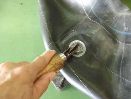 自転車のパンク修理みたいな感じですが、とても大変です。
