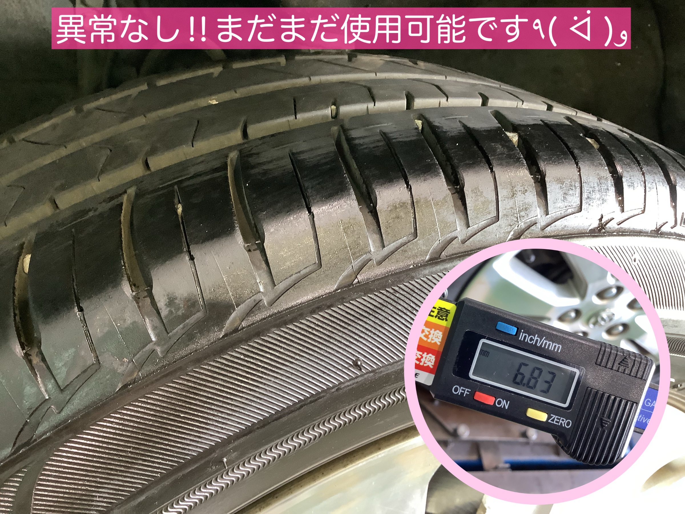 実は、2年程ご使用になられたというタイヤの新品交換にご来店くださったのですが、タイヤ点検をしてみると、まだまだ溝はしっかりと残っておりヒビ割れもなく、新品交換するには早すぎる状態でした(._.*)ウム