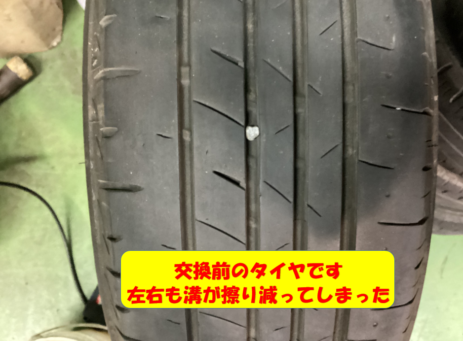 今回のご相談はタイヤの交換時期が気になるという事でご来店いただきました。毎日長距離を通勤で使用するという事でタイヤの現状を点検させていただきました。タイヤの真ん中3.5ミリ内側1.8ミリ外側2.1ミリという状態でした年数が2年使用。ご相談の結果交換させて頂きました。