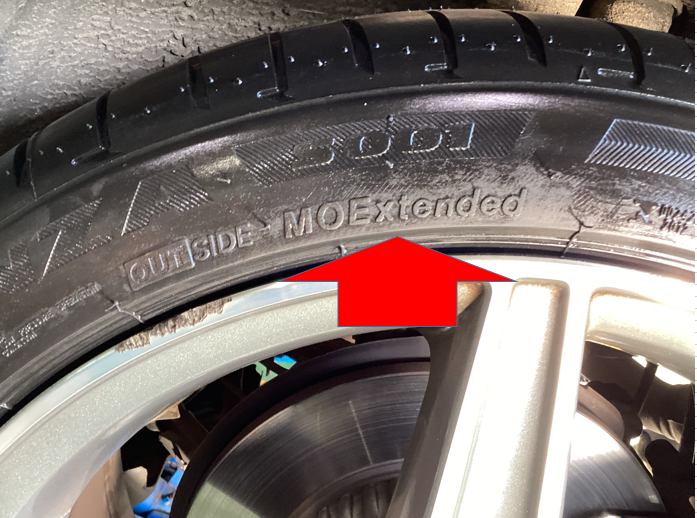本日もタイヤ館は元気に営業しております。今回のご相談はメルセデスベンツのリアタイヤ交換です。現状ついているタイヤはメルセデスの承認タイヤなんです。細かーく見てみるとMOEとタイヤに刻印されていました。