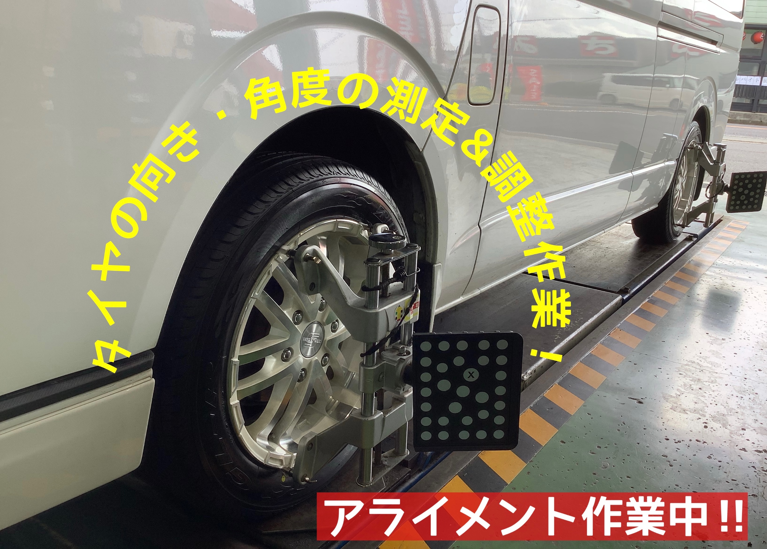 そして!タイヤ交換の後は「アライメント作業」(o・∀・)b゙