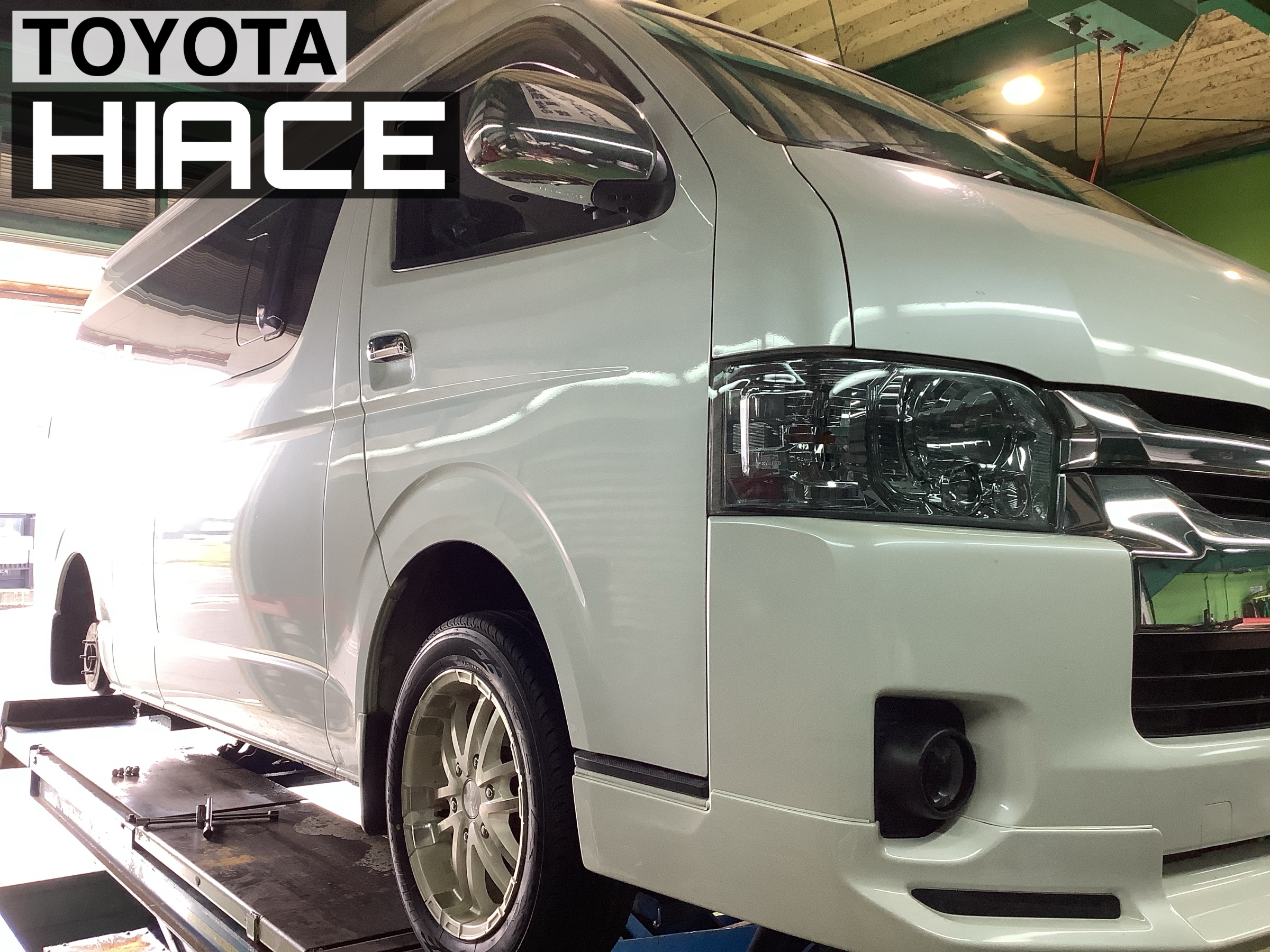 本日は、【トヨタ/ハイエース】のタイヤ交換&アライメント作業です(*・∀・)ノ