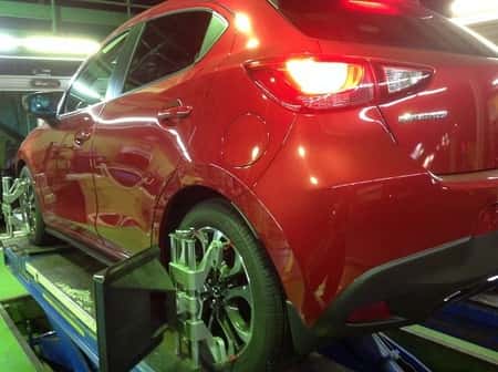 症状:ダウンサス取付後、ハンドルセンターズレ