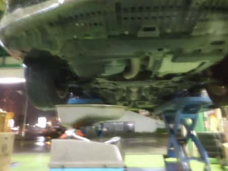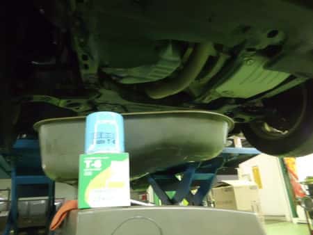 エンジンルーム下からドレンボルトを外してオイルを抜き