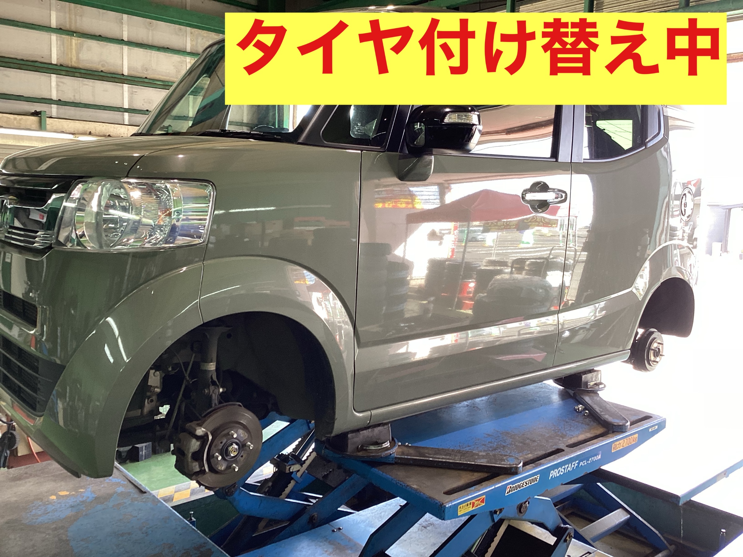 本日ご紹介するのはタイヤの付け替え中のご紹介です。