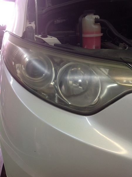 本日のご紹介は、エスティマのヘッドライト磨き・コーティングのご紹介です。