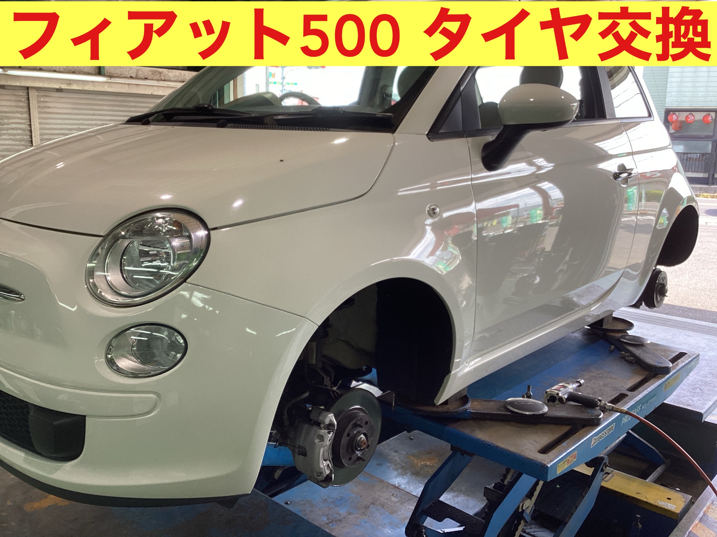 本日ご紹介するのはフィアット500のタイヤ交換です。