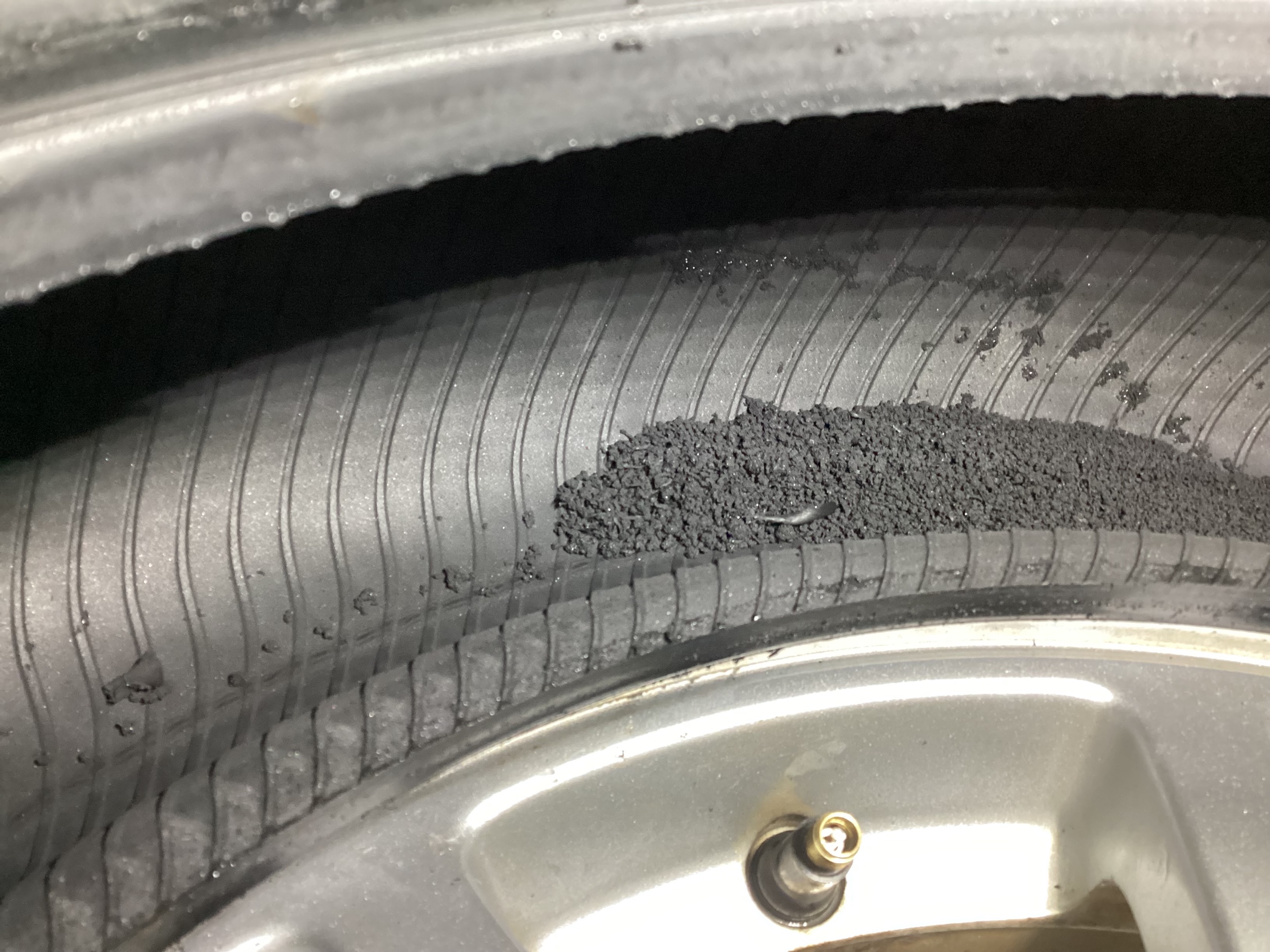 タイヤの側面にこすれた跡が見えます。