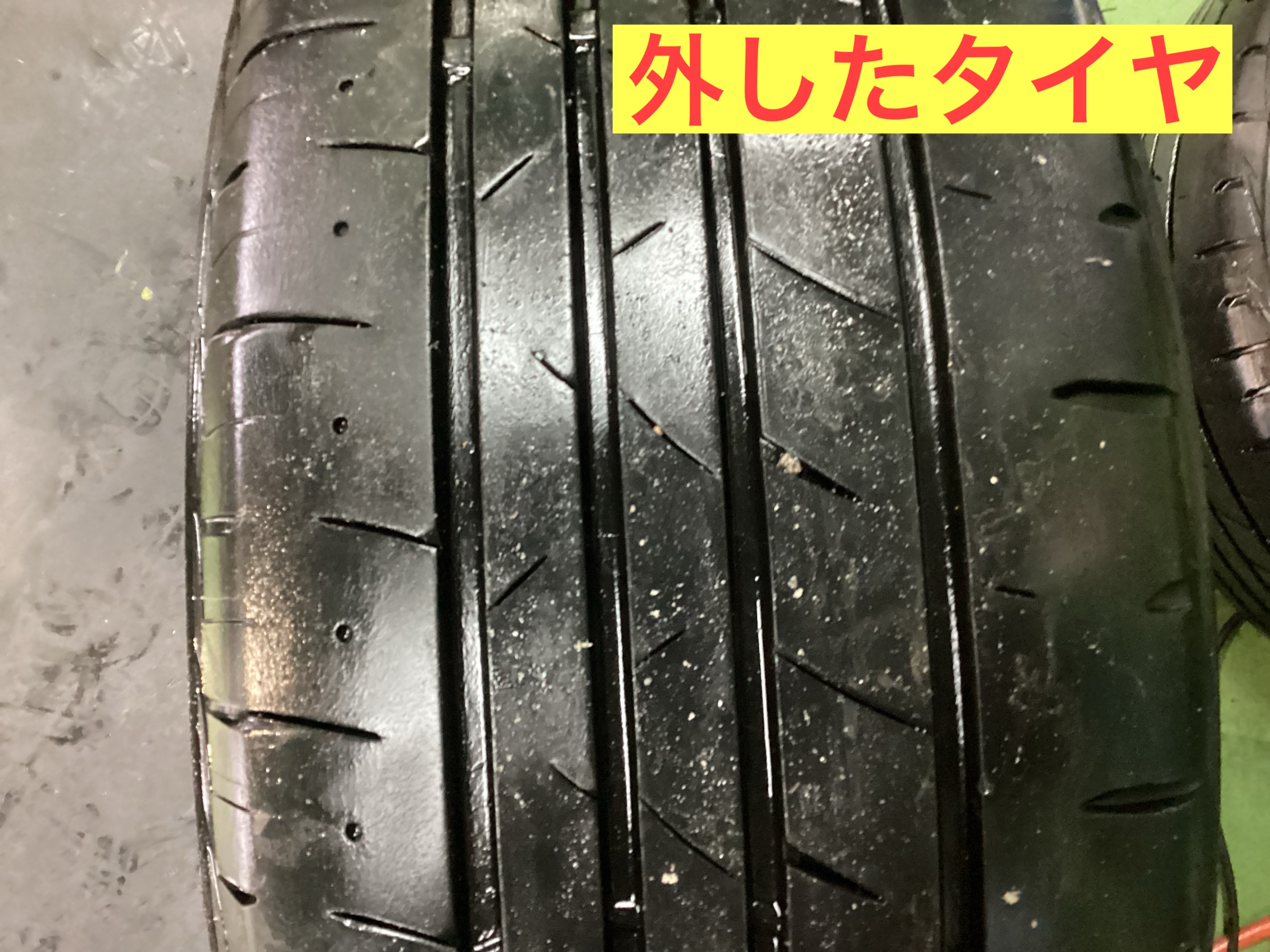 今回の作業は、リアタイヤを2本新品交換してフロントへ取付致します。エスティマは、フロントが駆動輪になりますので、定期的なローテーションもおすすめ致します。