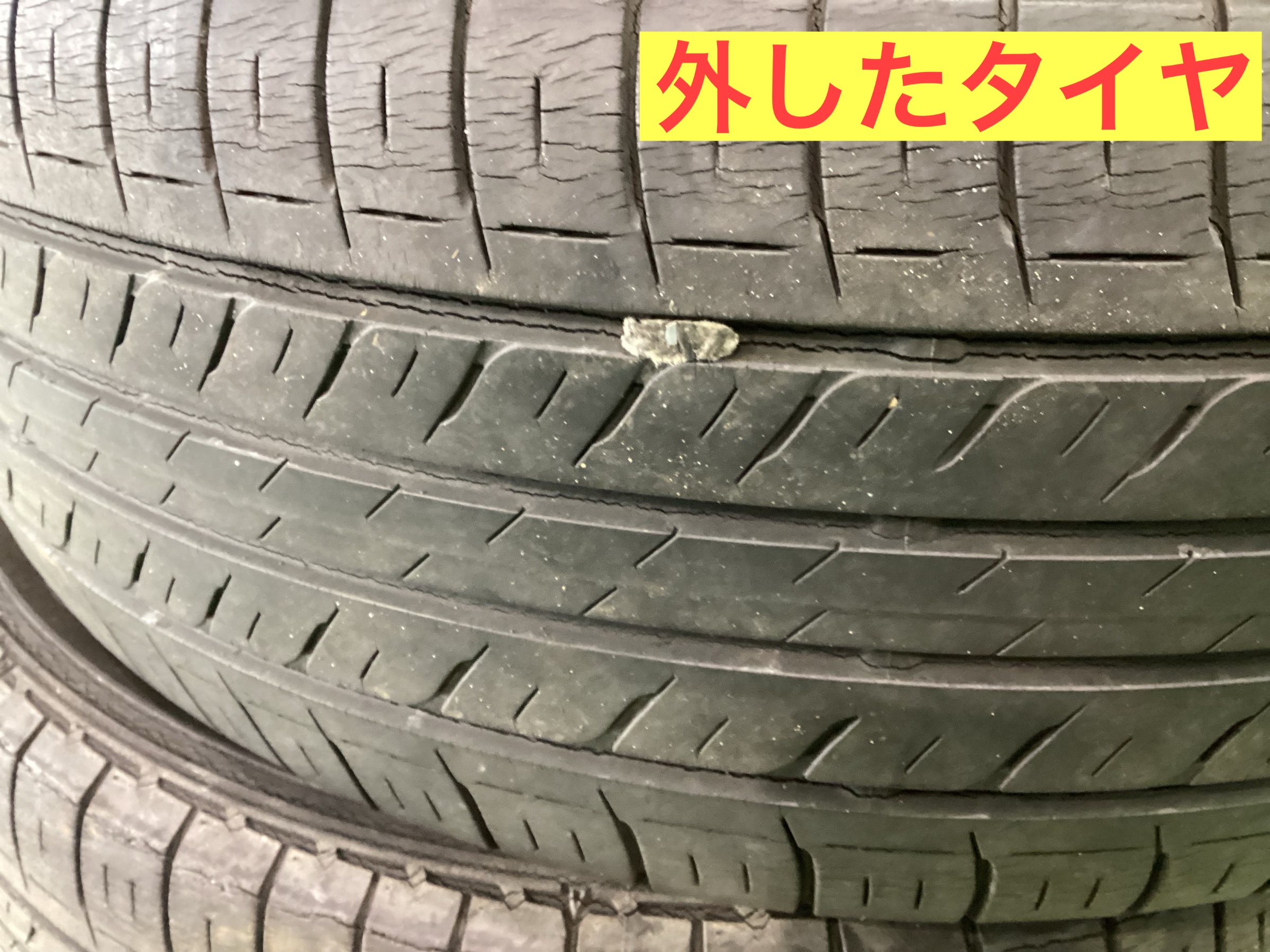 タイヤには、ヒビ割れが出てパンクの修理歴も確認とれました。ご相談させて頂き交換となりました。