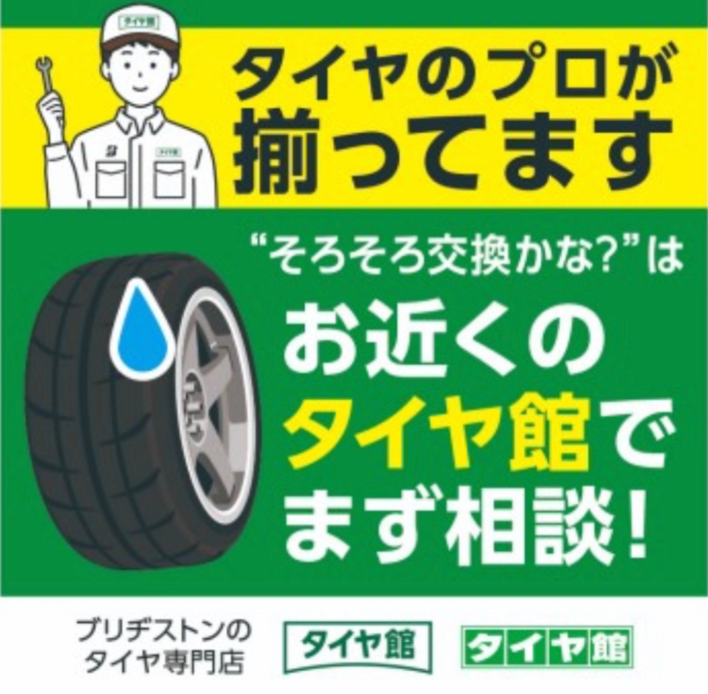 タイヤ館にはタイヤのプロがそろっています。 ポスト 2023年12月30日 詳しくはこちらをご確認下さい。 そろそろタイヤ交換かな?と思ったら お近くのブリヂストンのタイヤ館の プロスタッフに先ずは相談下さい。 関連情報もあわせてご覧ください タイヤ館WEB カテゴリ:お知らせ