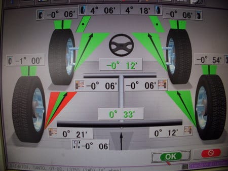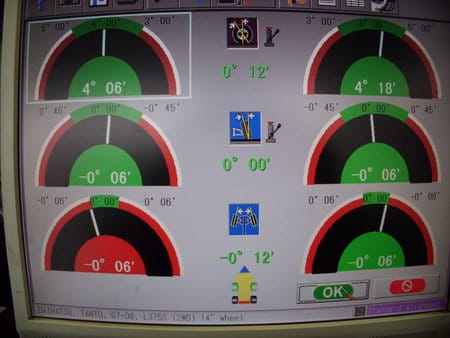 軽自動車はタイヤ幅がほそいので是非アライメント作業で