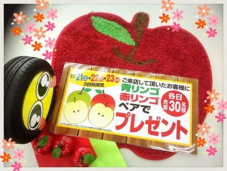 なんと!ご来店頂いたお客様に、青リンゴ・赤リンゴをペアでプレゼントいたしますヽ(・∀・)ノワーイ!!
